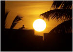 Sie tänzelt dimmenderweise von Dach zu Dach und muß aufpassen, nicht von der Palme am Untergang gehindert zu werden.