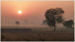 Der Nebel der Nacht weicht dem goldenen Licht und entführt den Reisenden in ein visuelles Feuerwerk der Lichter, Farben und Eindrücke am Rande der von der UNESCO gebauten Autobahn zum Taj Mahal.